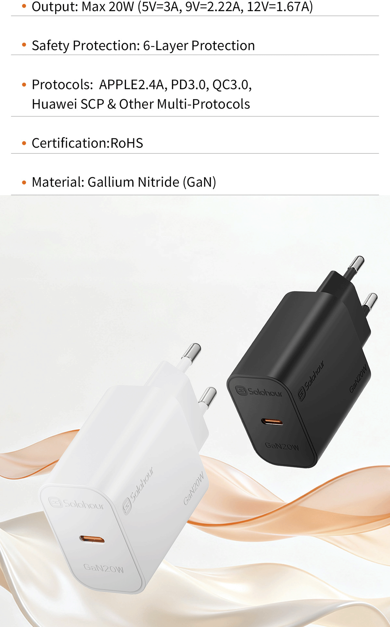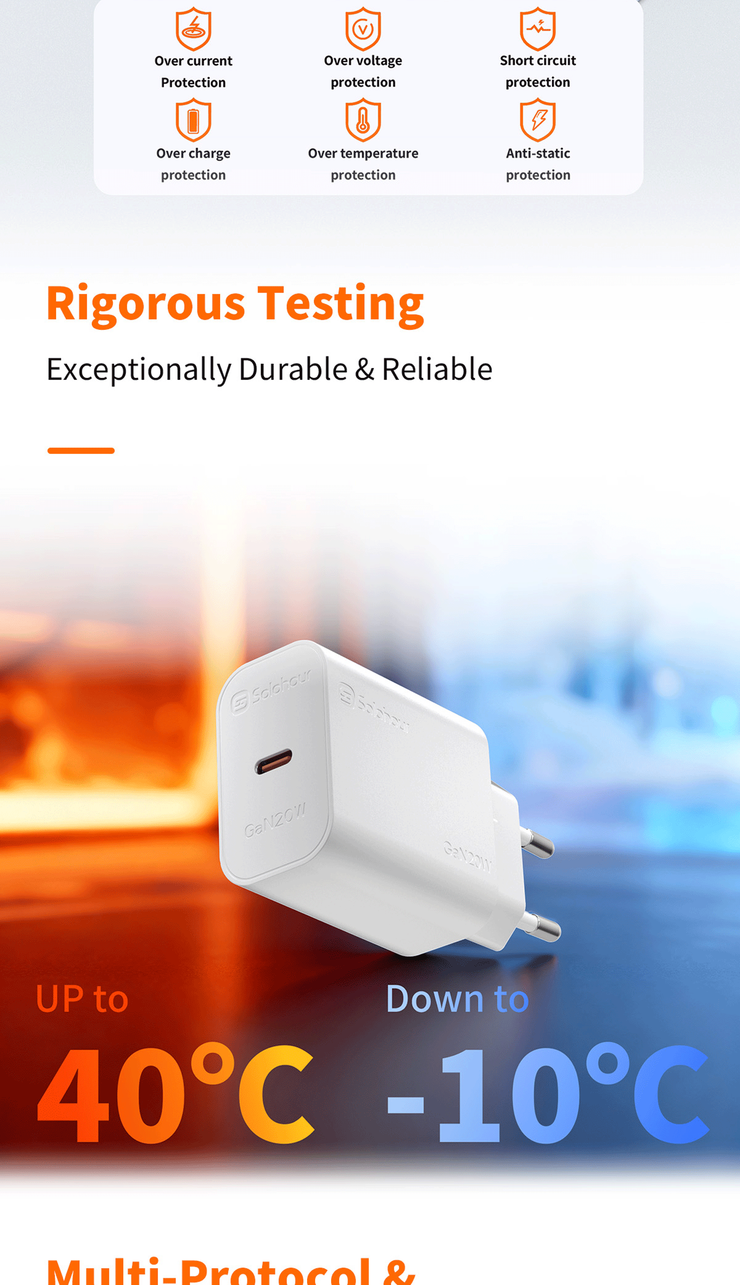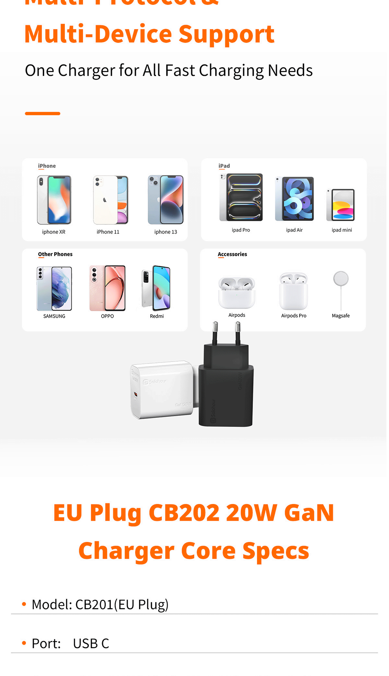 · Supported Protocols: APPLE2.4A|SAMSUNG5V-2A| PD3.0|QC3.0|DCP|QC2.0|SAMSUNG-AFC|HUAWEI-FCP|HUAWEI-SCP|PPS|MTK-PE